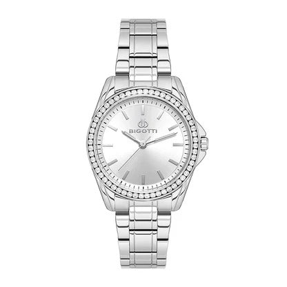 Bigotti Silver Stainless Steel Women’s Watch with Crystal Bezel - BG110534-1