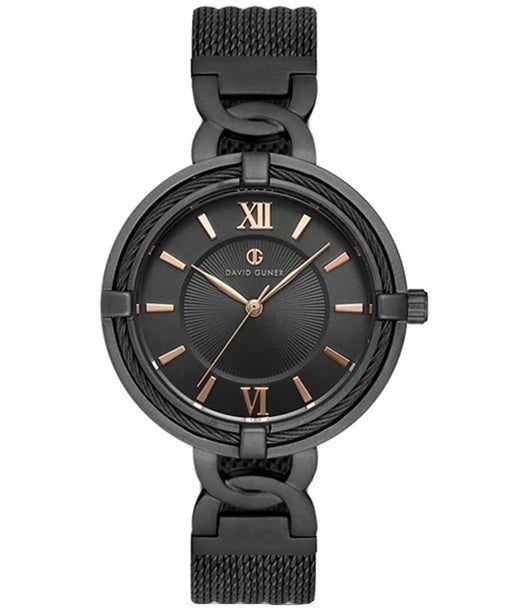 View full detailsDavid Guner Women’s Black Mesh Watch with Rose Gold Accents - DG-8208LC-G2E