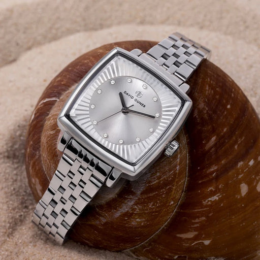 View full detailsDavid Guner Women’s Silver Square Watch with Crystal Markers - DG-8677LA-A1