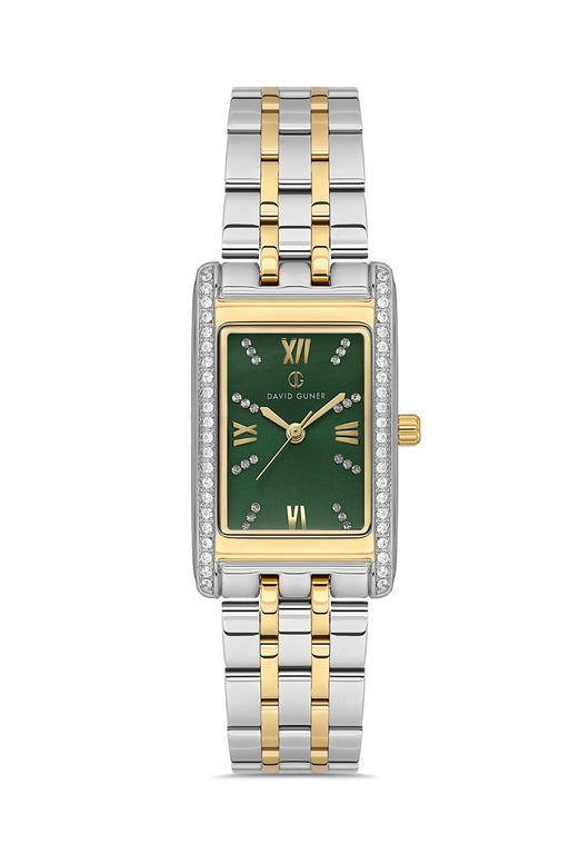 View full detailsDavid Guner Women’s Two-Tone Rectangular Watch with Green Dial - DG-8663LA-D10