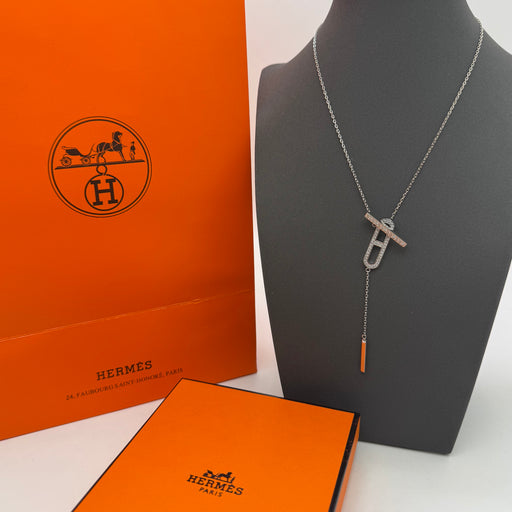 Brand: Hermès Paris Collection: Chaîne d’Ancre Enchaînée Material: Rhodium-plated metal with crystal inlay Color: Silver with clear stones ...