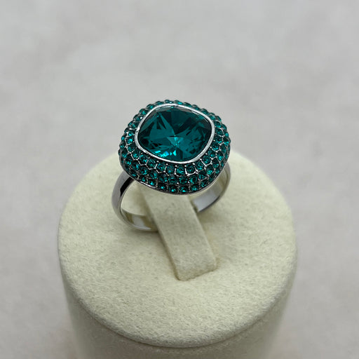Swarovski Prestige Halo Ring – Aurora Crystal & Emerald Green